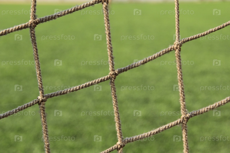 Фон из зеленой травы через воротную сетку