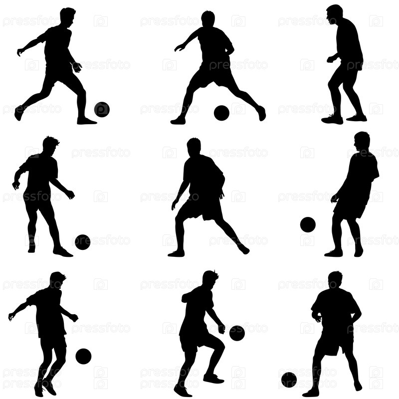 Силуэты футболистов с мячом. Векторные иллюстрации