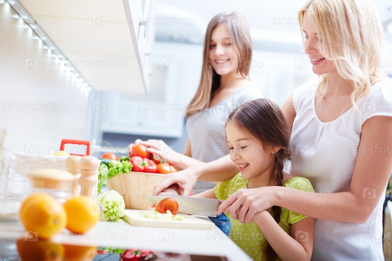 Семья готовит еду