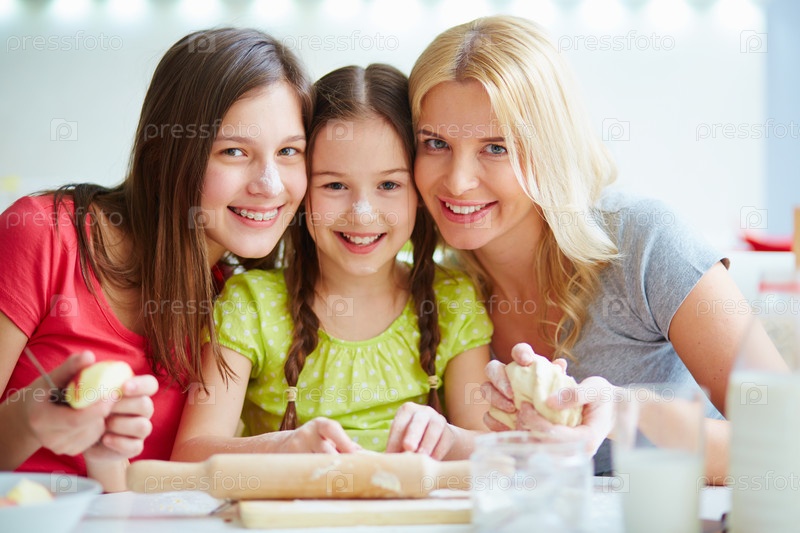 Семья готовит еду