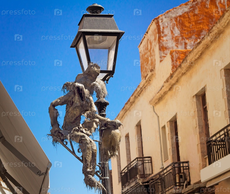 Оригинальный фонарь на улице в городе Ретимно, остров Крит