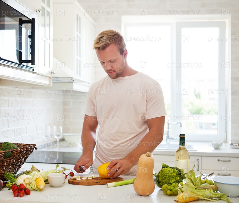Мужчина готовит еду на кухне