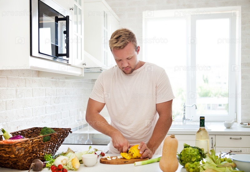 Мужчина готовит еду на кухне