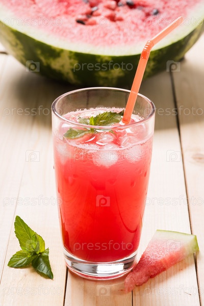 Свежевыжатый арбузный сок с мятой и льдом
