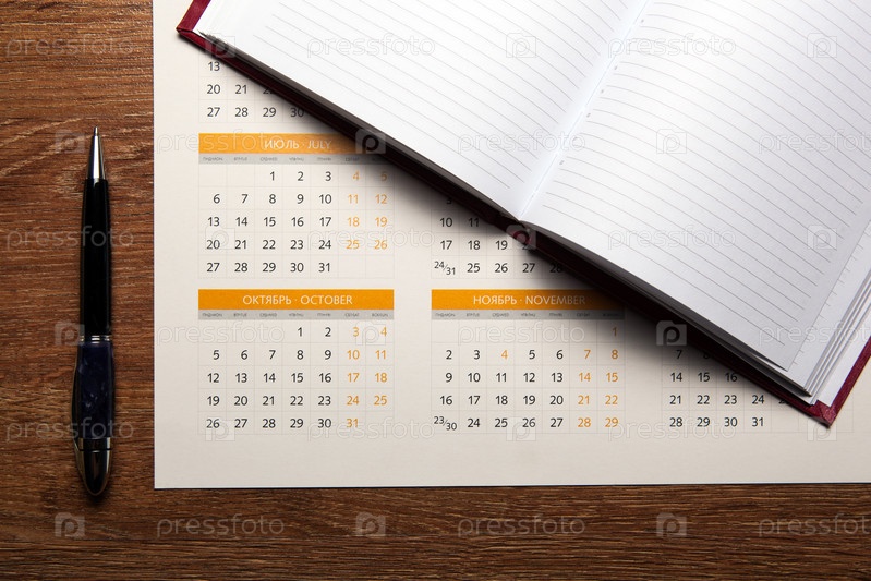 Настенный календарь, ручка и ежедневник