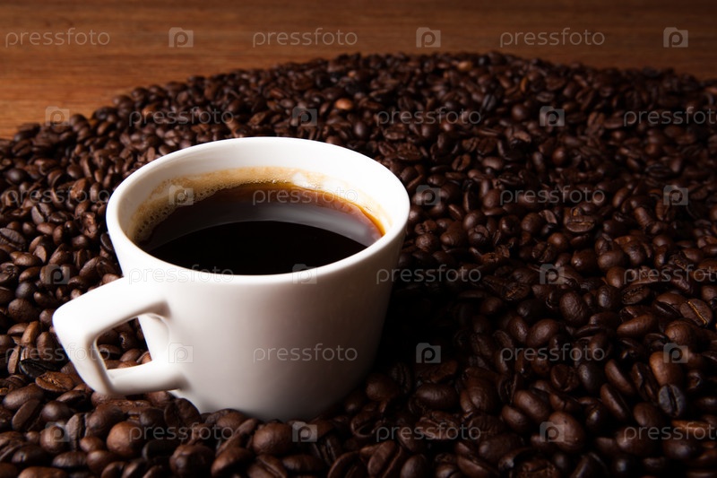 Чашка черного кофе с кофейными зарнами
