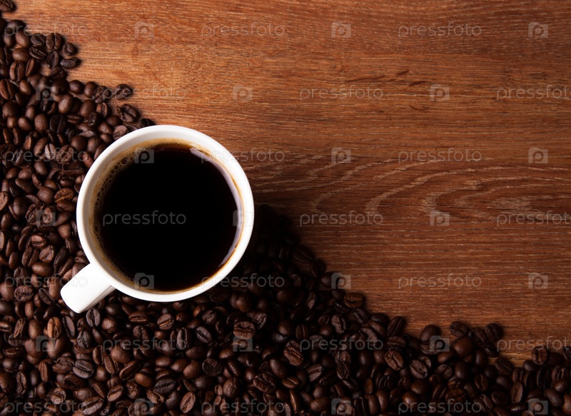 Чашка черного кофе с кофейными зарнами