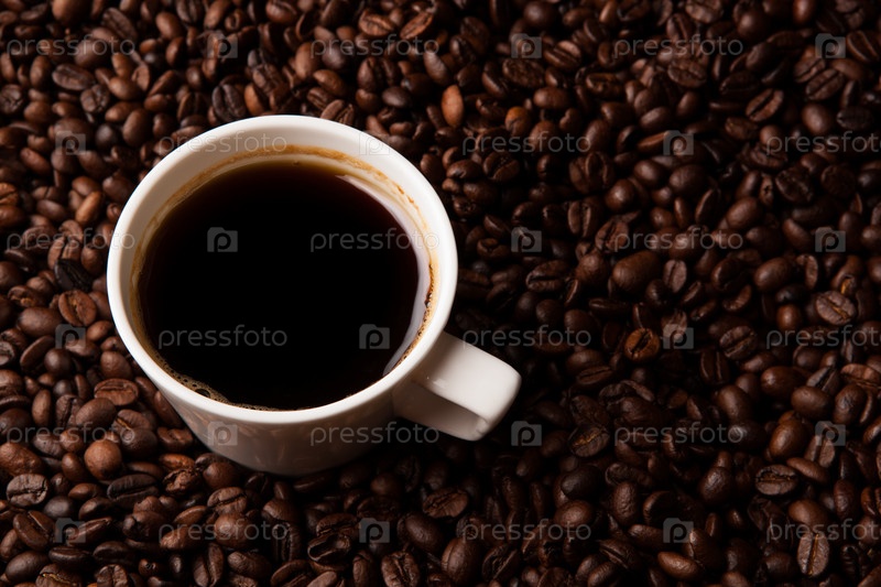 Чашка черного кофе с кофейными зарнами