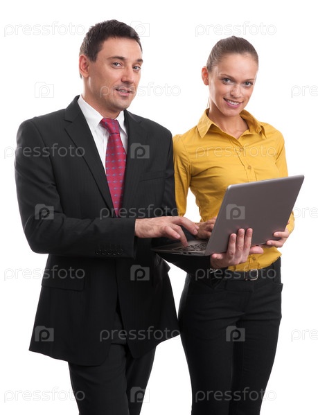 Деловые люди с ноутбуком