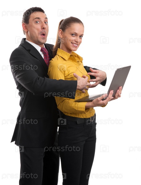 Деловые люди с ноутбуком