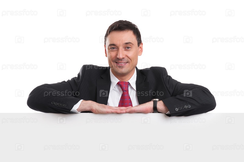 Счастливый бизнесмен с баннером