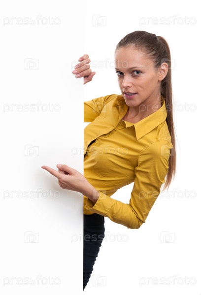 Молодая бизнес-леди с баннером