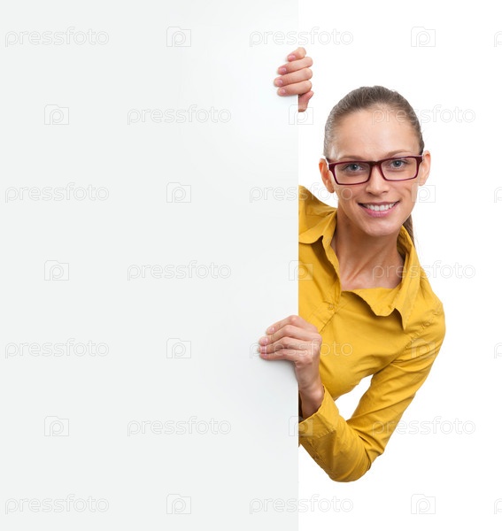 Молодая бизнес-леди с баннером