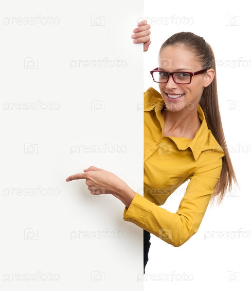 Молодая бизнес-леди с баннером