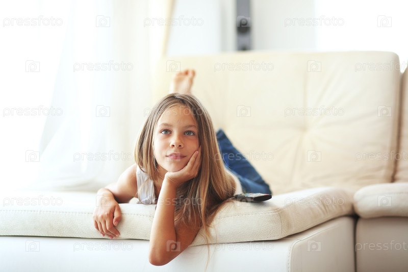Девочка смотрит телевизор