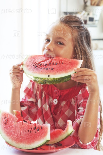 Ребенок ест арбуз