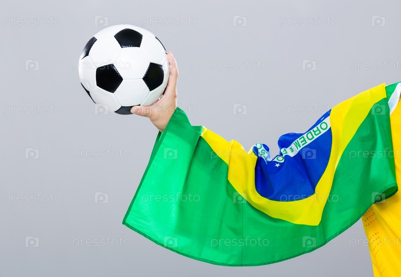 Рука с футбольным мячом и флагом Бразилии