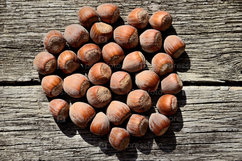 Горсть фундука на деревянном фоне