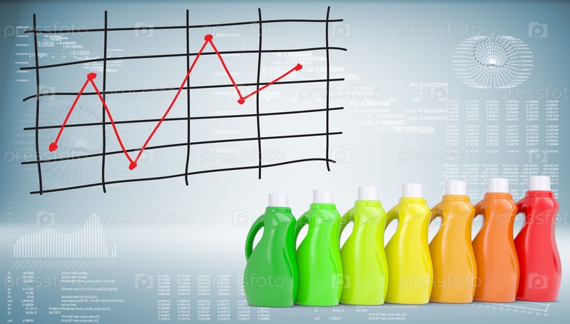 Бутылки бытовой химии и график изменения цен