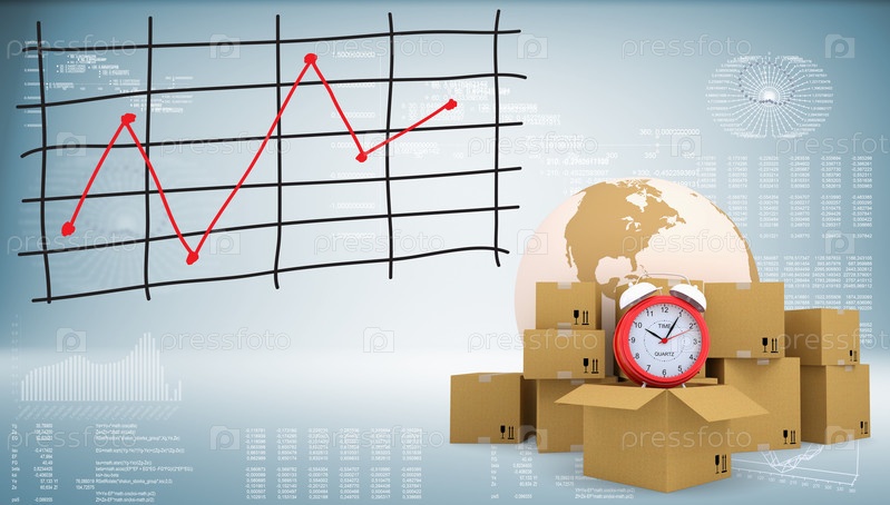 Земля с будильником и картонные коробки