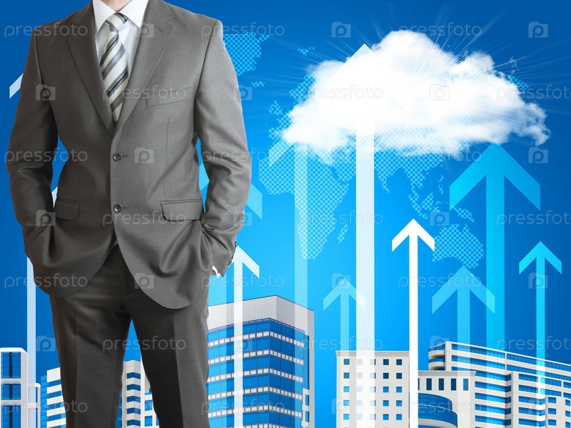 Бизнесмен в костюме и карта мира