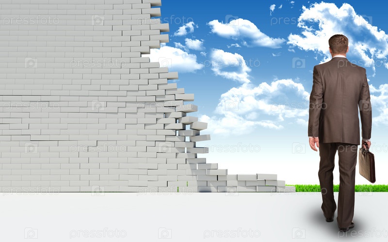 Бизнесмен идет сквозь стену