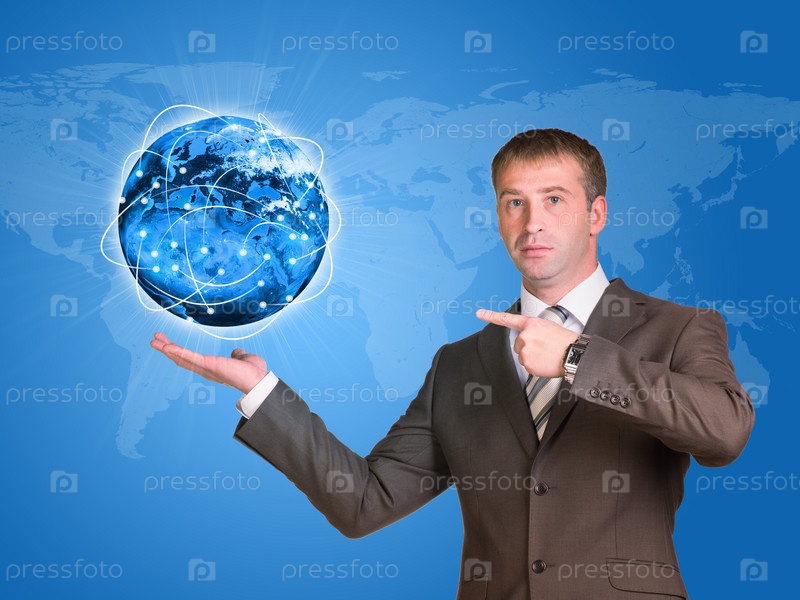 Бизнесмен в костюме держит Землю