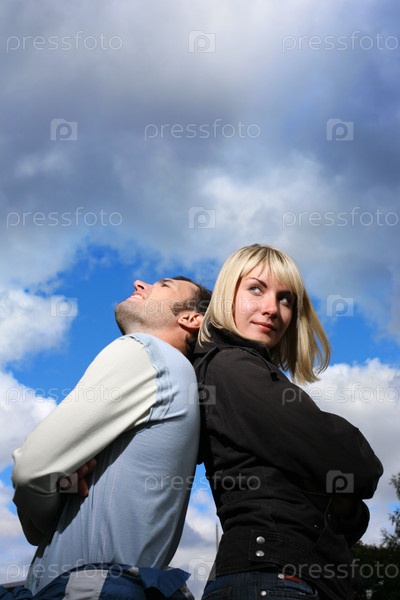 Молодая пара на фоне неба