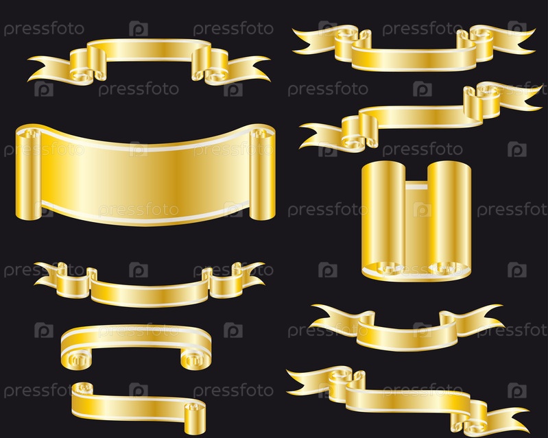 Набор золотых ленточек на черном фоне