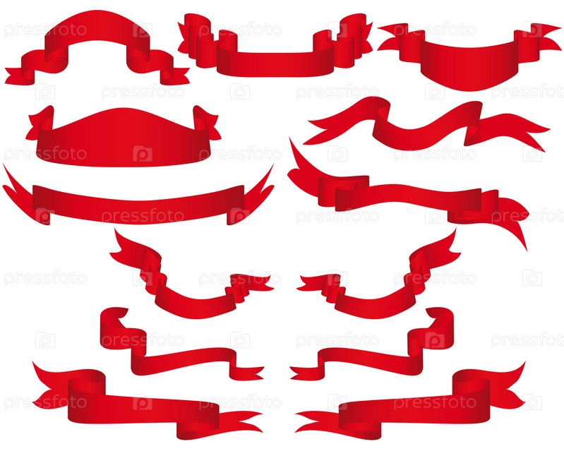 Набор красных ленточек на белом фоне