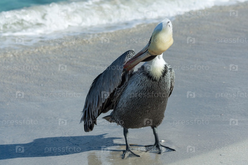 Пеликан на морском берегу
