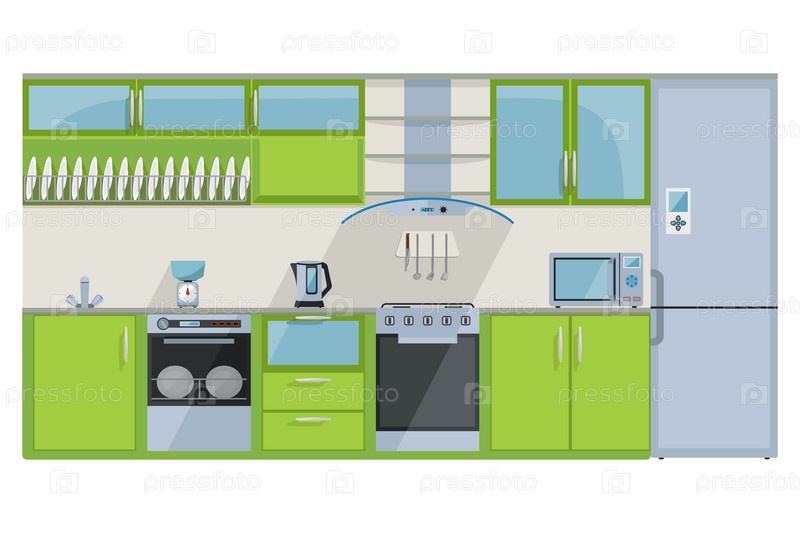 Зеленая кухня на белом фоне