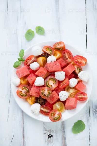 Салат с арбузом, помидорами и моцареллой