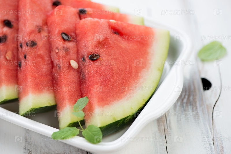 Ломтики арбуза с мятой