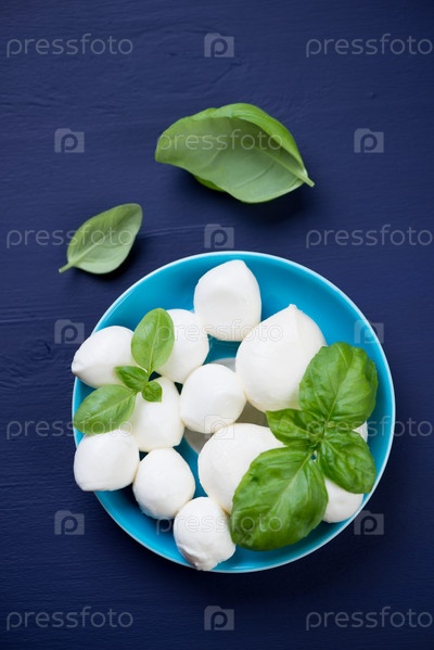 Шарики моцареллы с зеленым базиликом