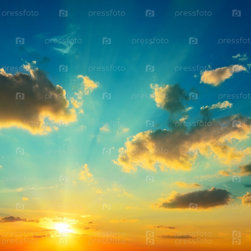 Облака, освещенные солнечным светом. Закат