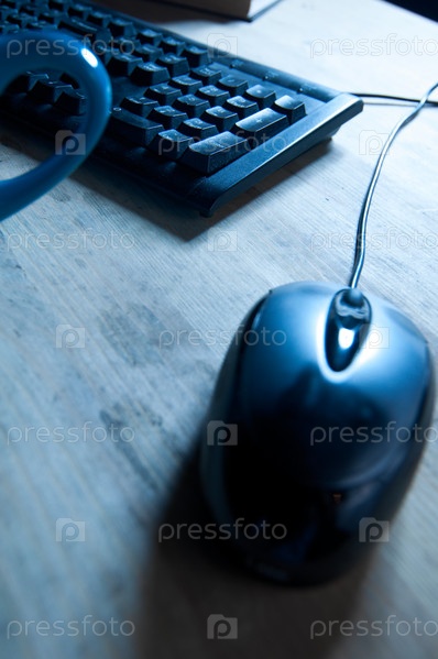 Рабочее место в голубом свете