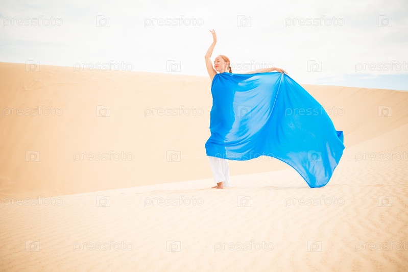 Молодая женщина с развевающимся синим шарфом