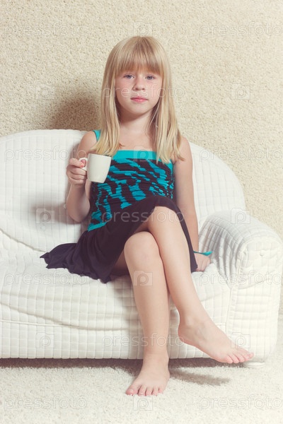 Девочка с чашкой на диване