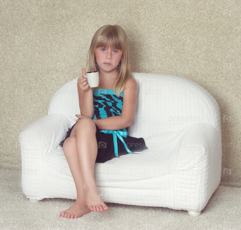 Девочка с чашкой на диване