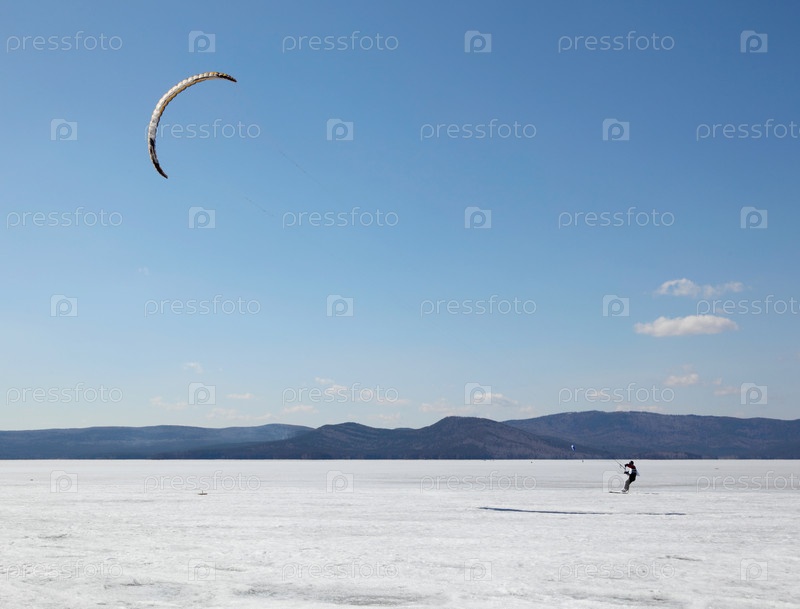 Соревнования по сноукайтингу на озере Тургояк