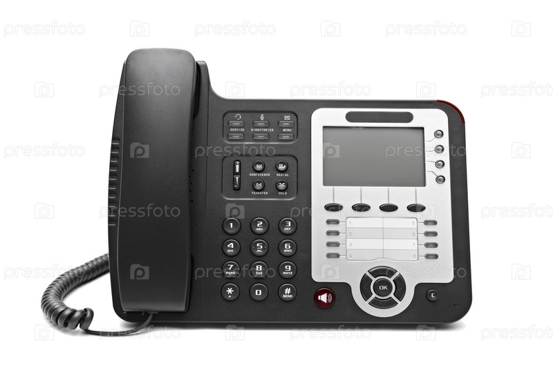 Черный офисный телефон, изолированный на белом