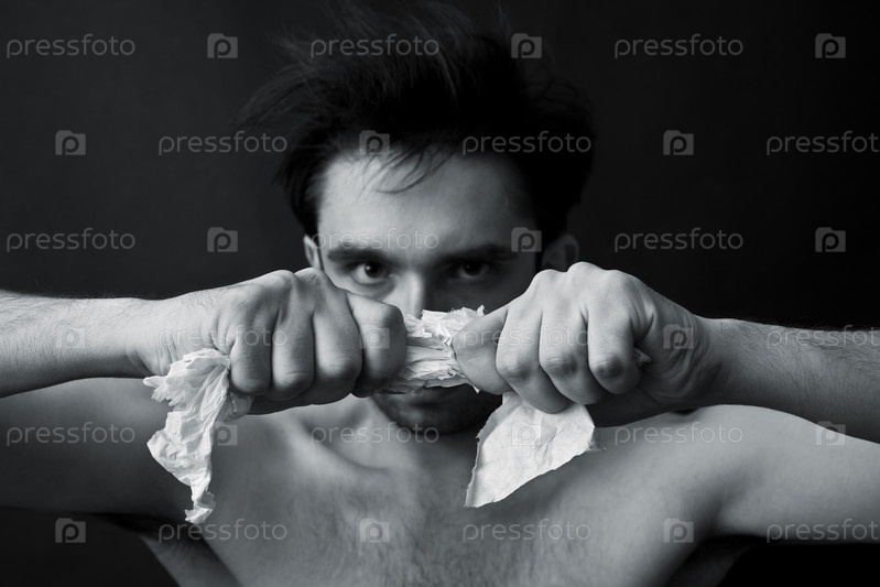 Молодой мужчина рвет бумагу