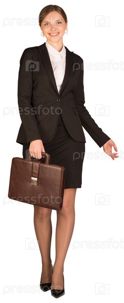 Деловая женщина идет с портфелем