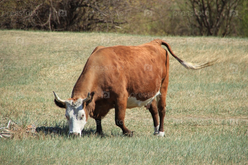 Корова пасется на лугу