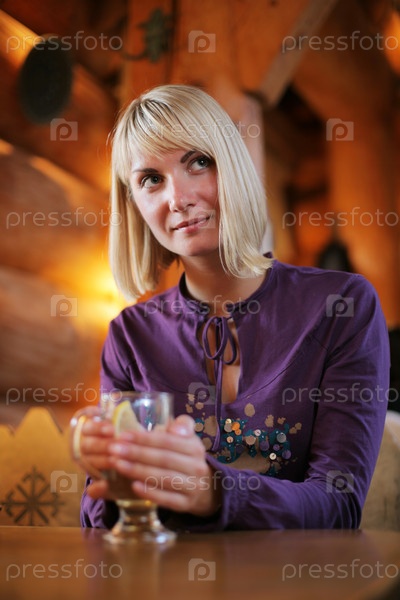 Красивая молодая женщина наслаждается напитком