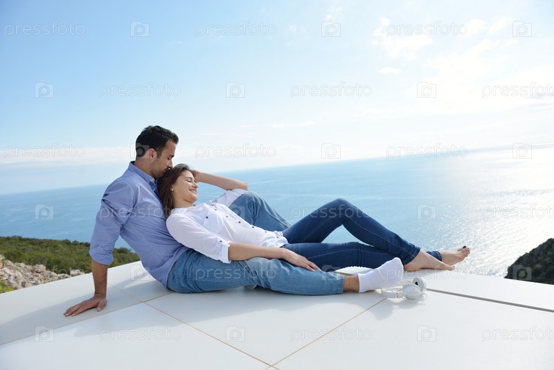 Расслабленная молодая пара дома