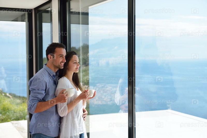 Расслабленная молодая пара дома
