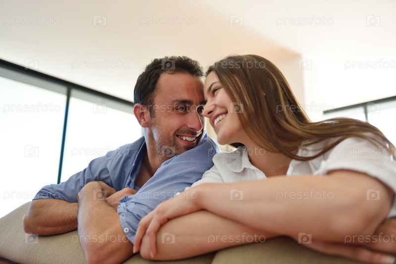 Расслабленная молодая пара дома