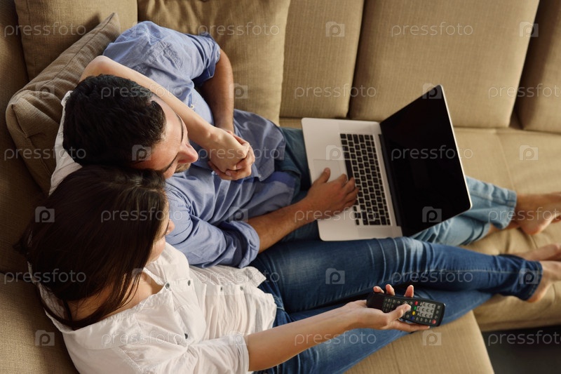 Молодая пара работает на ноутбуке